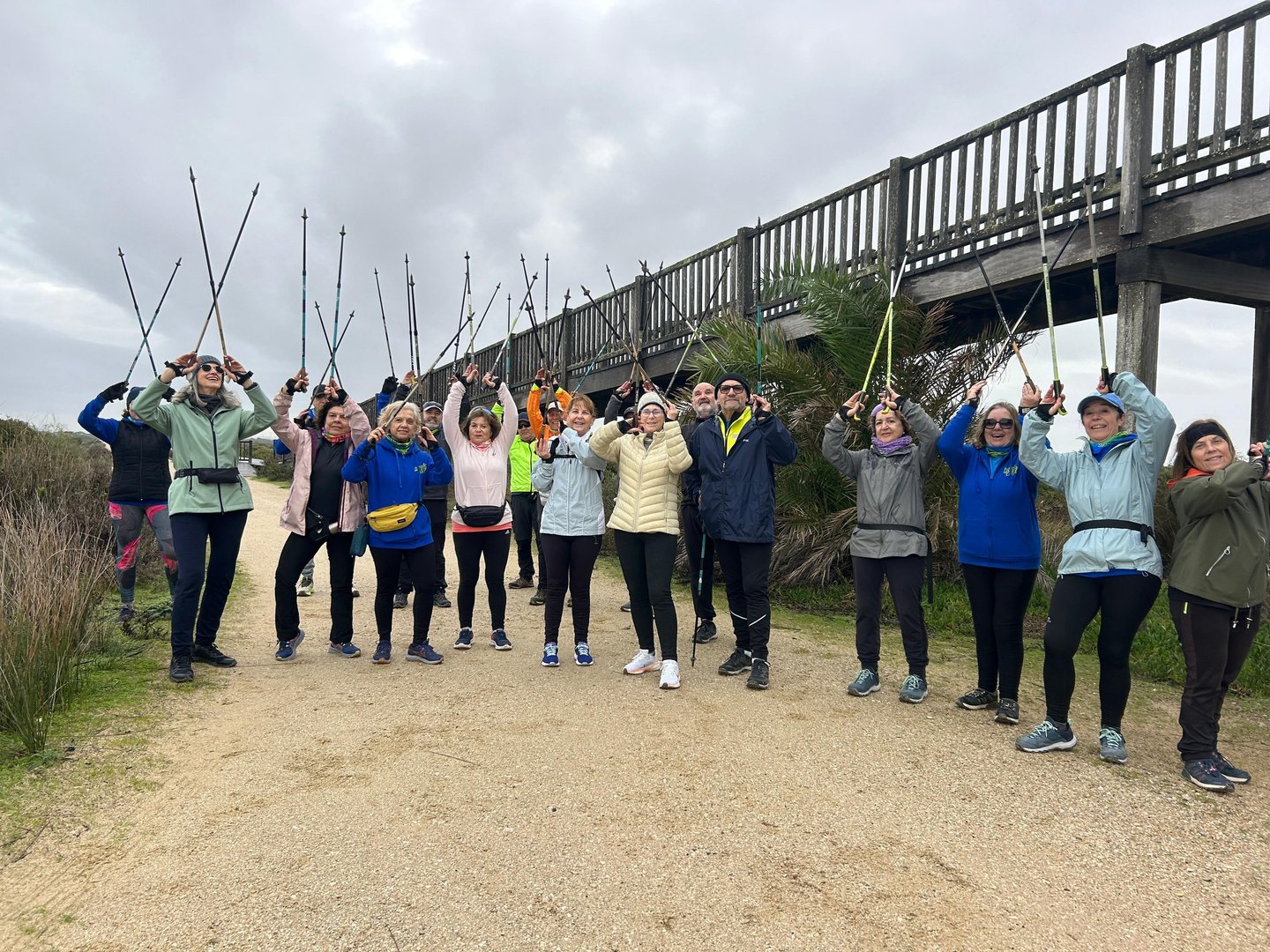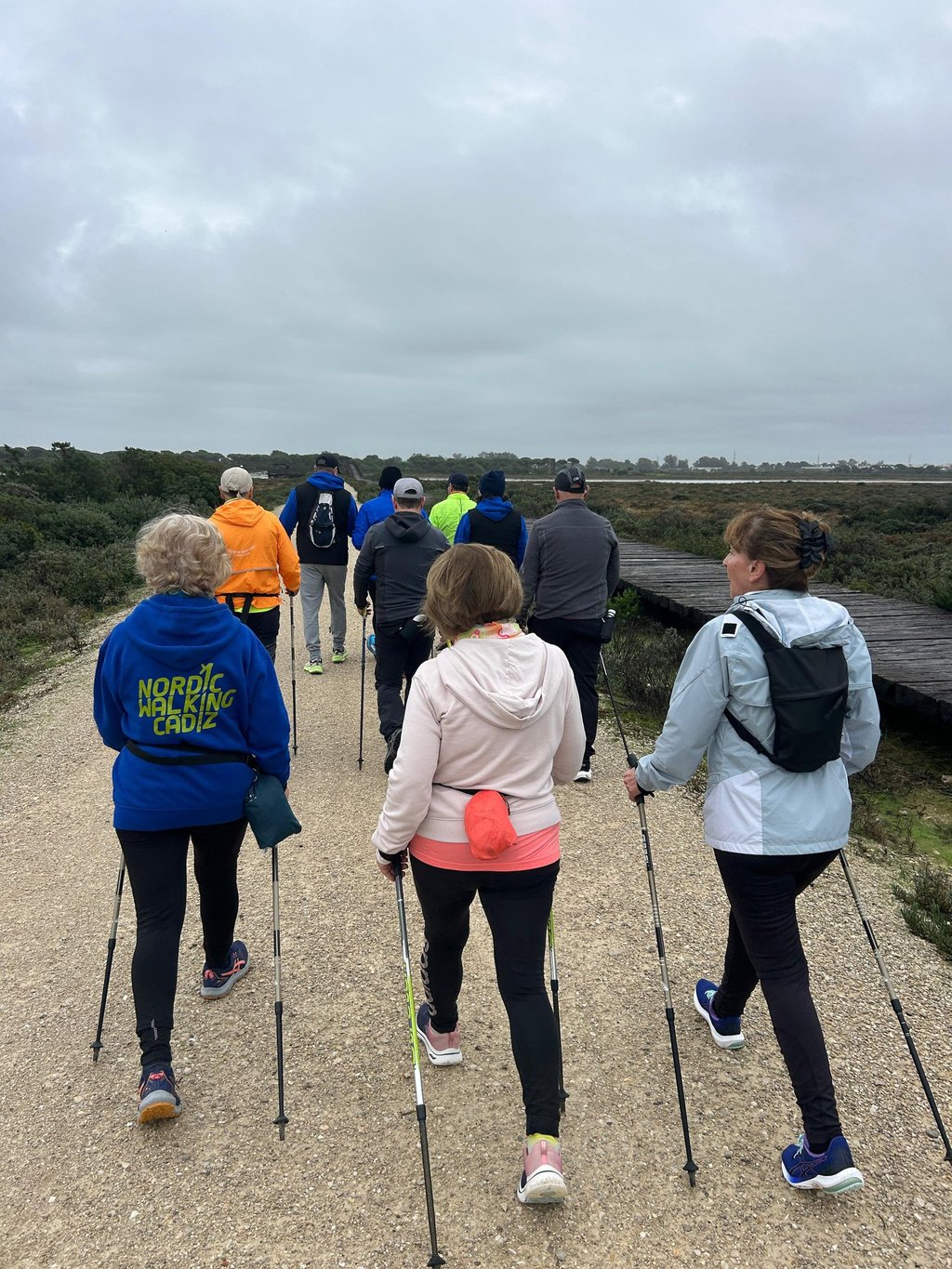 Momentos reales de marcha nórdica en Valdelagrana, donde la brisa marina acaricia el rostro y el paisaje se convierte en un espectáculo impresionante para los amantes de la naturaleza y el ejercicio al aire libre.
