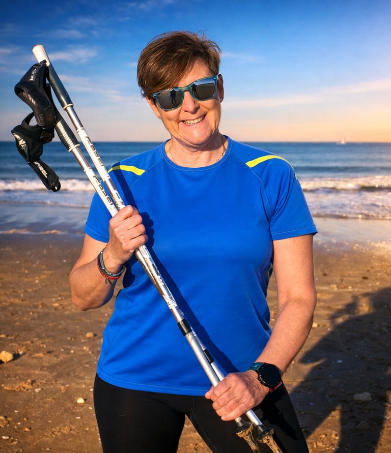 Una lesión importante me obligó a buscar una forma de entrenar segura y completa, que fortaleciera la columna y el tren superior sin castigar el cuerpo. Así descubrí la marcha nórdica. Me formé en Madrid con la técnica Alfa 247 y más tarde fui instructora en la primera promoción de marcha nórdica de la Federación de Montaña.
